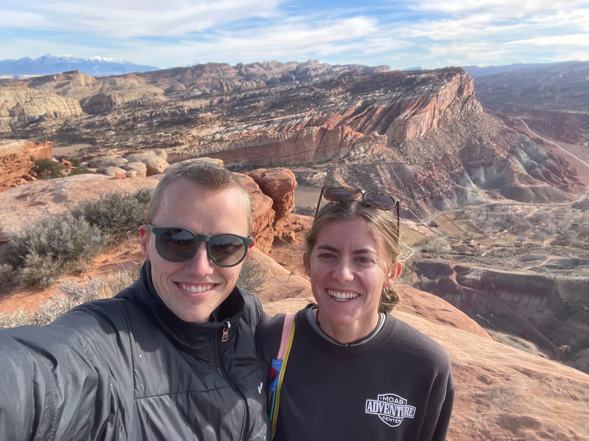 Okay enough with the mundane. After a thought-provoking comment from someone this week, I decided that I want to get out and stop being so boring. This also happened to be a 3-day weekend, so that seemed like a sign from the universe. Long story short, Aaron and I took a little road trip down to Capitol Reef with the intention of camping for a couple nights down there. I say “intention” because after the first night of pretty cold weather, we decided to shorten the plan a little bit. I’m no stranger to camping, having spent the majority of my nights for the last few summers sleeping on the river, but I am definitely a stranger to winter camping. I am NOT a cold person haha. It was a fun experience and I would certainly like to go again soon, but I would like to maybe upgrade some of my gear and better mentally prepare myself before next time. On the bright side, we had a great campfire Saturday evening and made a Dutch oven recipe from Aaron called a Hornet’s Nest. Similar to the difference between summer and winter camping, it turns out that summer and winter Dutch oven cooking are two different beasts. I’ve made dozens of Dutch oven cakes on the river, yet we came across a few difficulties with the usual coal ratios I’m used to using in the heat of summer. Long story short, we figured it out eventually and the Hornet’s Nest turned out pretty well (according to Aaron’s memory from scout camp).